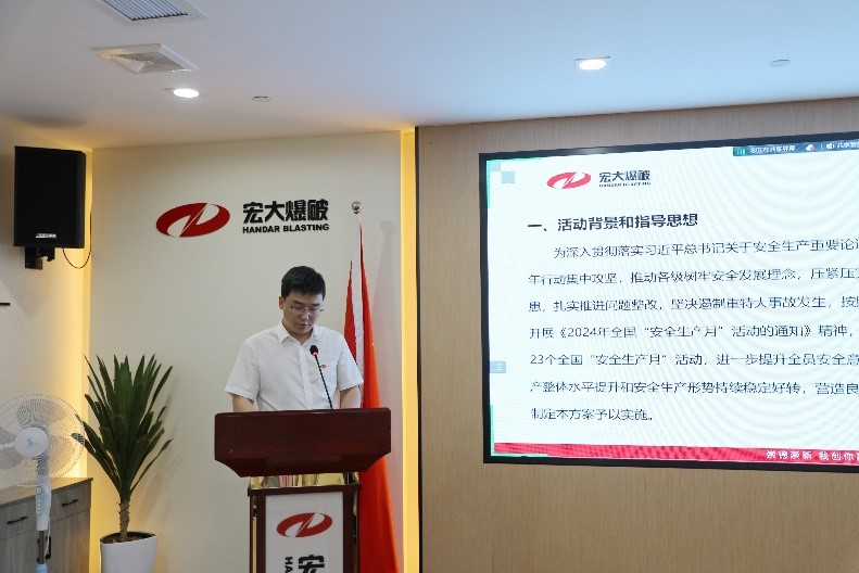 宏大民爆党委书记兼常务副总经理华立新发表动员讲话,他强调党建在引领安全生产管理工作中的核心作用,并要求各成员企业在开展安全生产月活动时注重实际效果,避免形式主义,以此提升宏大民爆的整体安全管理水平和全员的安全生产素质。