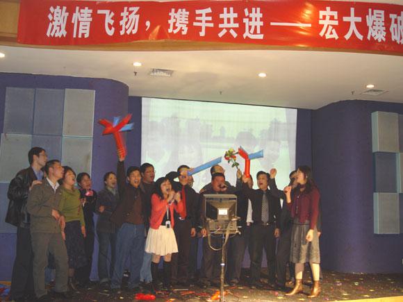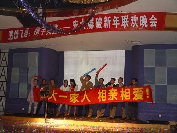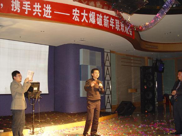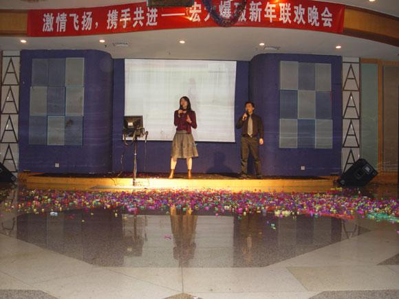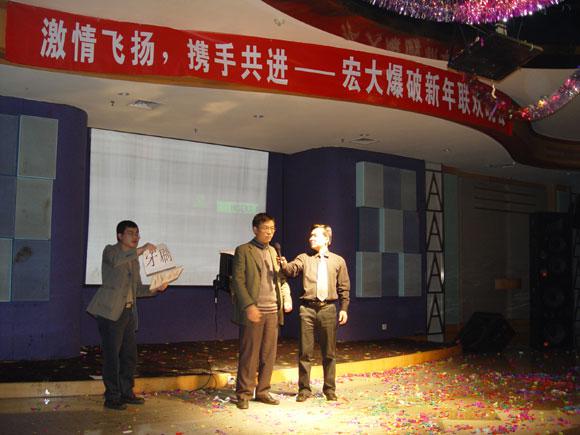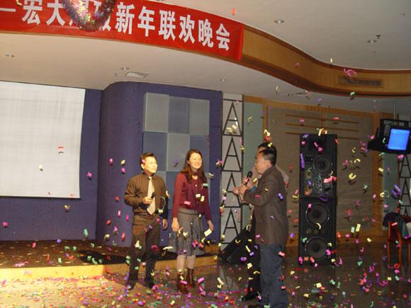 当晚,“激情飞扬、携手共进——宏大爆破新年联欢晚会”隆重举行,来自全国各地的宏大同仁踊跃参与节目,在台上载歌载舞,其乐融融,分享喜悦之情。其间,李董、郑总、王总等公司领导分别为员工抽取一、二等奖,最让人感动的是,分布在全国各地的项目部同事还特地精心录制了贺年视频,为宏大公司领导和同仁拜年,充分展现了宏大人的团结精神和凝聚力,正如晚会的合唱节目一样,我们是“宏大一家人,相亲相爱”。