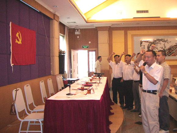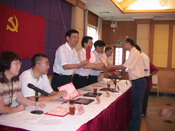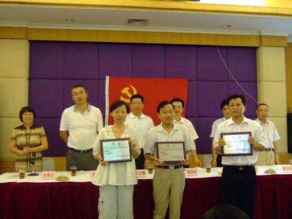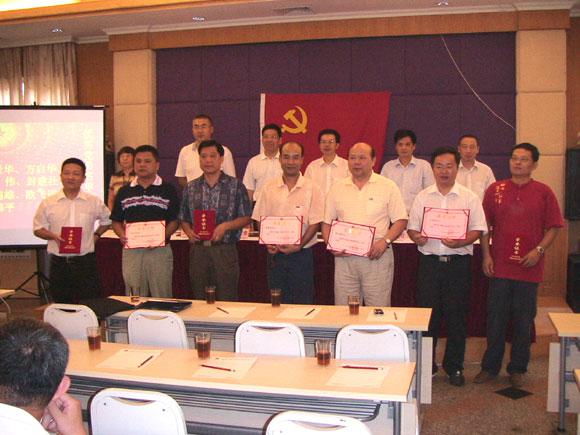 会议的第一项议程为新党员宣誓。公司党委委员肖文雄副总经理作为领誓人,带领新党员在鲜艳的党旗面前宣读了入党誓词,庄严的宣誓仪式结束后,公司领导和党委委员向获得2006年度优秀党员光荣称号的党员(赖景华、方启华、陈伟、封建社、黄锦雄、欧飞进、林伟平)颁奖并合影留念。黄锦雄同志作为优秀党员代表上台发表感言,表示将继续努力工作,团结群众,永葆党员的先进本色。