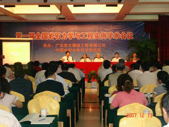 2007年12月15日,国岩石力学与工程学会工程实例专业委员会主办的第一届全国岩石力学与工程实例学术会议在海南省三亚市警官度假中心隆重召开。会议由中国岩石力学与工程学会工程实例专业委员会主办,广东宏大爆破股份有限公司和中国水利水电科学研究院联合承办。