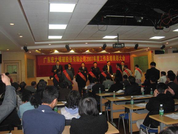 会议期间,宁煤集团闫书记向我司颁发了“惊天一爆,安然无恙”的荣誉牌匾,这表明了业主对我司在宁煤大峰矿所取得的骄人成绩给予了充分的肯定和表扬。会议还隆重表彰了2007年度优秀团队、优秀员工以及公司工会组织的征文比赛获奖人员,公司领导及嘉宾为获奖者颁奖。优秀团队以及优秀员工代表分别作了表态发言,表示要戒骄戒躁,将继续努力进一步发扬宏大精神为公司的战略目标实现作出新的贡献。