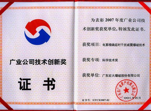 2008年4月28日,广东省广业资产经营有限公司在珠岛宾馆隆重举行2007年度表彰大会。我司“三喜”临门:一是我司荣获“先进集体”荣誉称号;二是郑炳旭总经理被评为“先进工作者”;三是我司“电算精确延时干扰减震爆破技术”项目获得技术创新奖。