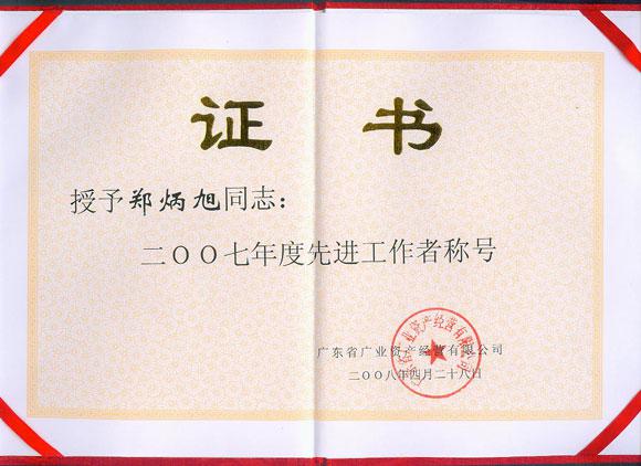 2007年是我司快速发展的一年,广东省广业资产经营有限公司的表彰是对我们的肯定。希望我司各位同仁再接再厉,以饱满的热情再创更大的辉煌!