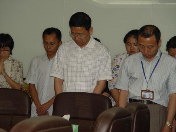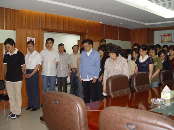 2008年5月19日下午2时20分,广东宏大爆破股份有限公司总部员工带着沉重的心情来到会议室,会议室的投影幕上播放着四川汶川大地震的现场图片,一幅幅令人痛心的照片印入大家的眼帘。此刻,会议室空气凝重,一片寂静,大家默默地看着,感受着灾区人民的感受,担忧着全国人民的担忧。2时28分,向四川汶川地震遇难者默哀正式开始,随着哀乐奏起,全体员工低头默哀。就是这三分钟,我们真的什么都不想做,只想哭泣,也正是这三分钟,寄托了我们对灾区遇难同胞的无限哀思。
