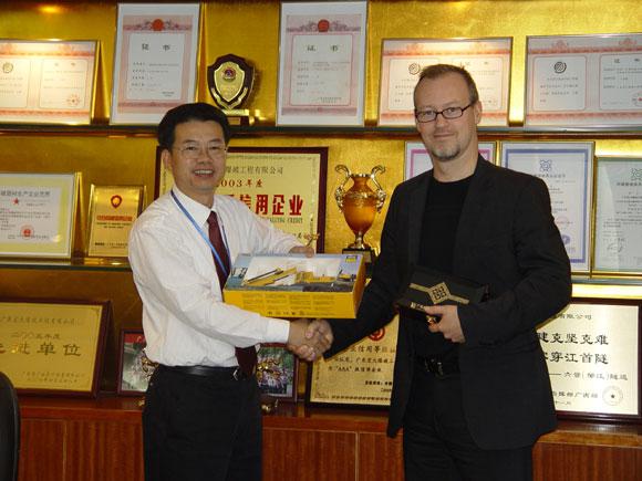 11月27日,世界三大矿山机械设备供应商之一的阿特拉斯·科普柯公司建筑与采矿技术部亚洲区经理马腾先生(Marthen)、露天矿岩设备业务线经理叶幼岚先生等一行来我司商务洽谈。我司和阿特拉斯公司一行互赠礼品,并就设备采购事宜进行了洽谈。郑总表示,宏大和阿特拉斯·科普柯有着多年长期的合作,希望今后继续保持业务往来,在多个领域互相配合,共同开创新业绩。