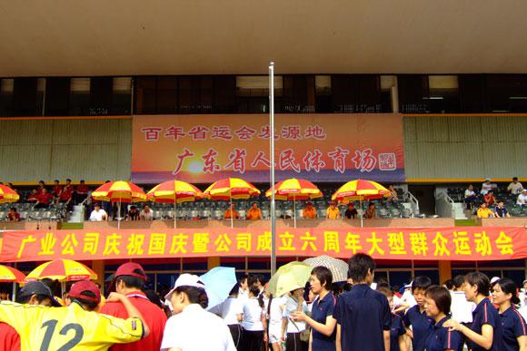为庆祝国庆暨广业公司成立六周年,进一步贯彻落实《全民健身计划纲要》,增强公司干部员工体质,活跃业余文化生活,培养员工团结、协作精神,促进公司企业文化建设, 9月28日广业公司在省人民体育场举行了“广东省广业资产经营有限公司群众运动会”。