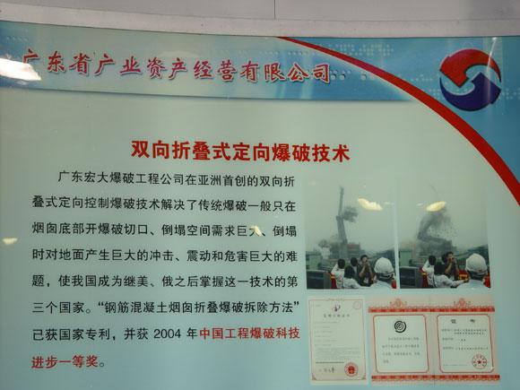 此次成果展按全省21个地级市、广业、广弘、广晟和广东省技术创新服务中心设立展区,广东省广业资产经营有限公司参加了此次成果展。我司的“环保爆破工程”被广东省广业资产经营有限公司列为参展项目。“环保爆破工程”参展内容包括“亚洲第一爆”,亚洲首创双向折叠式定向爆破技术和环保爆破(低噪音、低烟尘排放)居国内领先地位。
