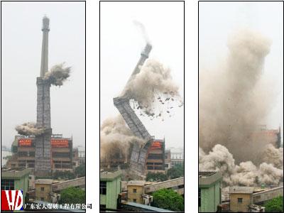 广州造纸厂100米烟囱多段连续折叠爆破工程(2005年)
