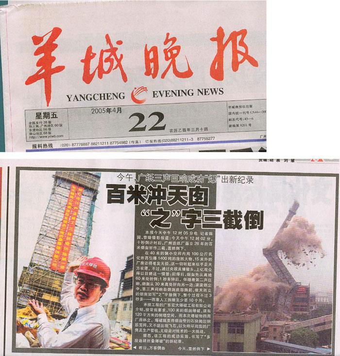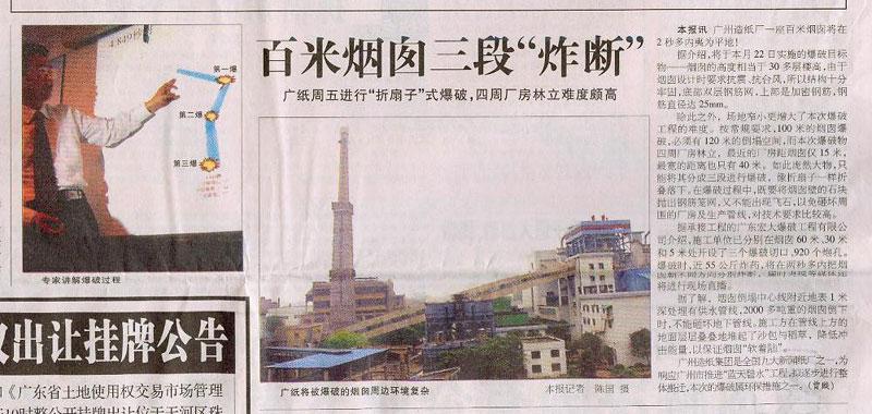 羊城晚报连续报道广州纸厂百米烟囱爆破拆除工程