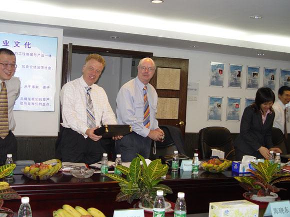 2006年4月12日上午,澳大利亚最大的项目开发和工程承包公司―――澳大利亚礼顿控股集团公司董事Allard Nooy,澳大利亚礼顿控股集团公司下属迪斯服务有限公司项目经理Richard Swann,澳大利亚礼顿控股集团公司北京办事处项目拓展主任欧阳俊,澳大利亚驻广州总领事馆商务处商务经理陈昭颖等一行来我司商务会谈。