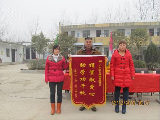 2012年12月12日上午10时,河南省舞钢市天气寒冷、寒风刺骨,但舞钢市庙街乡冷岗小学校门口却充满着阵阵春潮和暖意,广东宏大舞钢爱心基金会向冷岗中心幼儿园捐赠仪式正在冷岗小学举行。