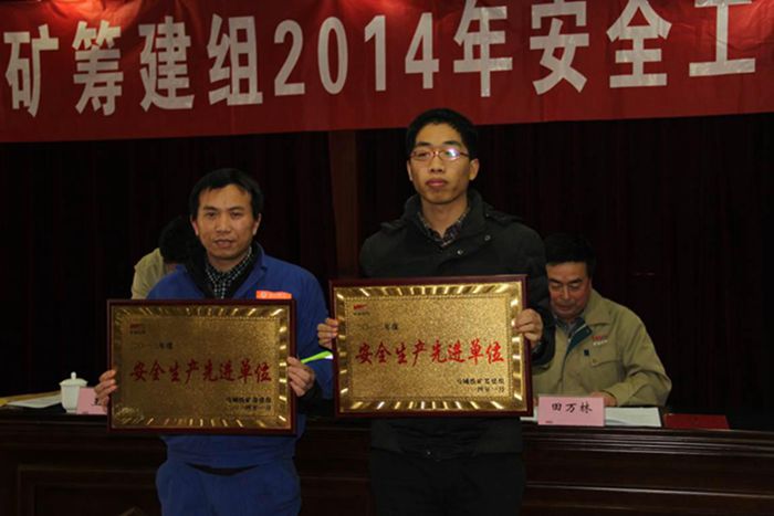 1月13日,河北钢铁集团矿业公司马城铁矿筹建组举行2014年安全工作会议,涟邵建工马城铁矿项目部被业主评为“2013年度安全生产先进单位”,马城铁矿筹建组组长(矿长)王军为项目部颁发了奖牌,项目部经理曾剑频在会上做了发言,并与业主签订了2014年安全生产责任书。同时,项目部的谭琦、朱立平被评为“安全生产个人”。