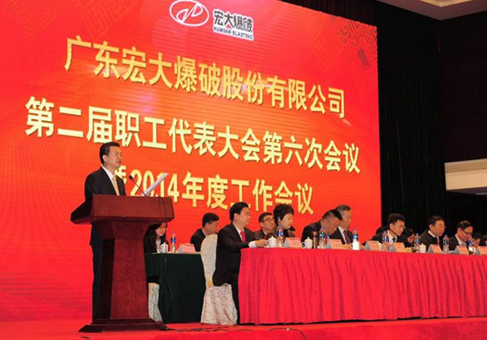 郑董事长首先在报告中感谢各方对宏大一年来的支持,感谢全体员工的辛勤付出。随后,郑董事长分析了2014年宏大面临的内外形势,认为2014年将是资产价格低迷,资金成本居高不下的一年,国企矿山和大型民企在资金紧、成本涨、门槛升的压力下,将加快矿服业务外包。宏大公司要继续扩大在矿山服务的领先优势,也要克服各种不足。接着,郑董事长提出了2014年经营奋斗目标与五项主要工作任务,分别是:(1)强化内控,练好内功;(2)强化渠道建设,树立宏大品牌;(3)以资本平台为依托,实现战略性扩张;(4)以人为本,建设活力、共享、幸福的宏大系;(5)以十八届三中全会精神和党的群众路线教育实践活动为指导,不断清除思想障碍和改变工作作风,确保二次创业顺利实施。