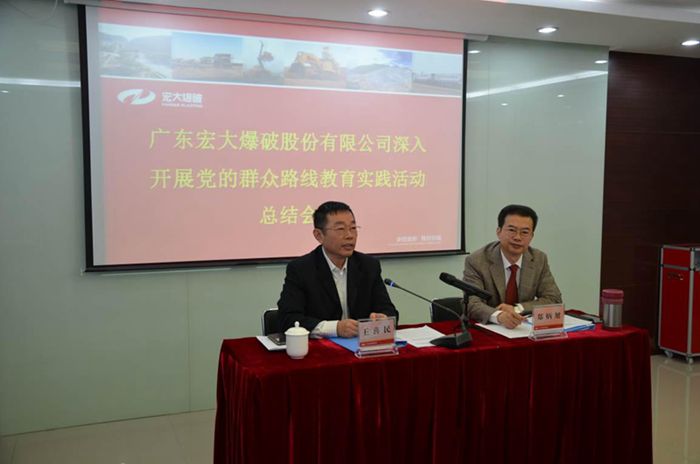 广业公司副总、宏大公司党委书记王喜民代表广业公司党委和宏大公司党委发表了讲话:一是在广业公司督导组的帮助指导下,宏大公司圆满完成了党的群众路线教育实践活动各阶段的任务,广业公司充分肯定了宏大公司在开展教育实践活动中取得的成效。宏大公司各级领导干部在活动中能虚心接受意见,认真剖析检查,不回避问题,对克服四风存在的问题,实行民主测评,打造了一支高素质的管理队伍;二是要巩固党的群众路线教育实践活动中已取得的成果,继续在实践中改进,并按照上市公司的要求,进一步完善公司各项管理制度,全面促进公司实施“二次创业,打造千亿航母”的发展目标;三是在整顿四风的问题上,宏大公司要在教育实践活动总结会议后形成具体制度来确保公司的正常经营和发展。从管理机制和民主决策机制中,切实解决和防止问题的发生。