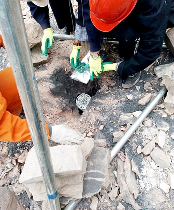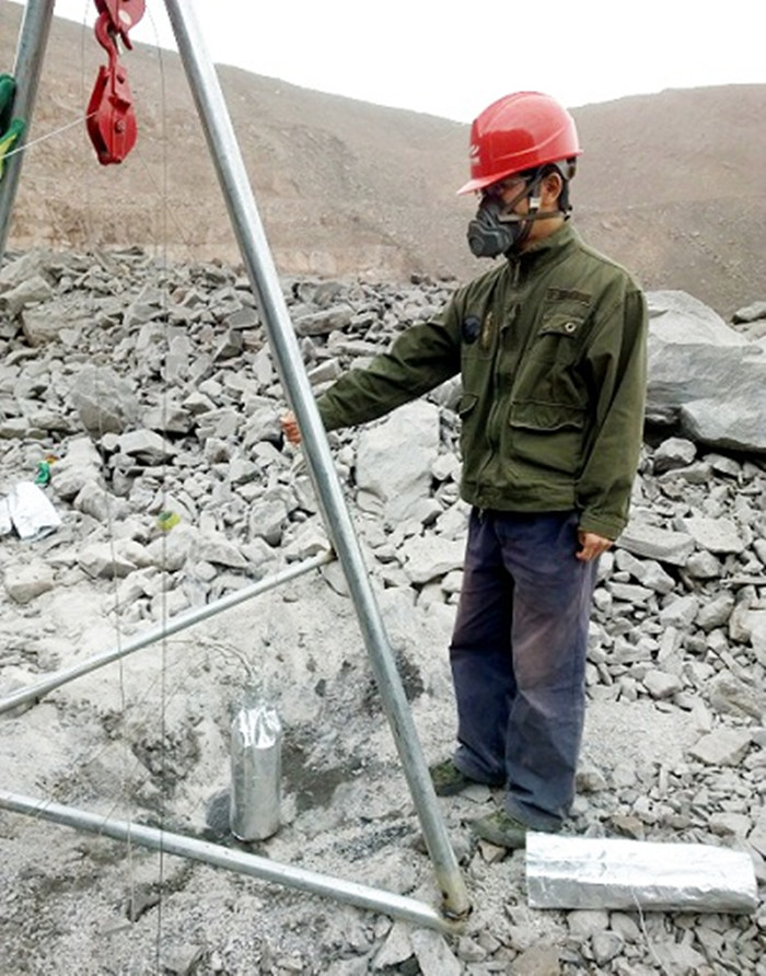 《高温火区耐高温护套技术》研究课题组2013年10月在广东宏大爆破股份有限公司宁夏分公司的大力支持下由惠农项目部牵头组建,经公司工程事业部和研发中心于2014年5月批准立项。在大石头项目部的大力协助下,经过长达一年的前期基础性研究工作,于2014年10月2日进行了该项技术关键科目的现场试验并取得了突破性的进展。