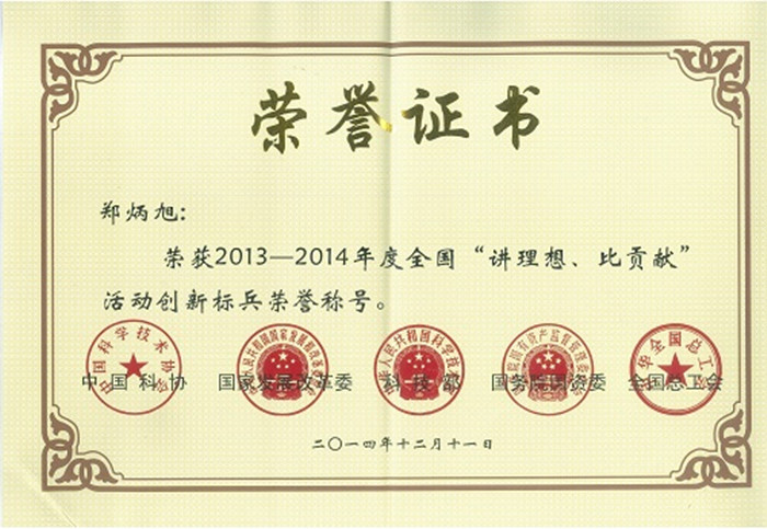 “讲理想、比贡献”活动由中国科学技术协会、国家发展改革委、科技部、国资委、全国总工会等五部委每两年联合举办一次,广东省共有11人获得2013-2014年度全国“讲理想、比贡献”创新标兵,郑董名列其中。他们都是甘于贡献、淡泊名利、与技术团队共同攻克了企业技术难题的先进代表,充分体现了他们迎难而上、攻坚克难的创新精神,为企业的发展作出了重大贡献。