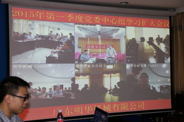 3月19日下午,广东宏大爆破股份有限公司全资子公司:广东明华机械有限公司(以下简称:明华公司)在公司本部会议室召开了2015年第一季度党委中心组学习扩大会议。公司党委委员、班子成员、纪委委员、本部正副部长参加了会议,各下属公司中层及以上领导干部通过视频参会。