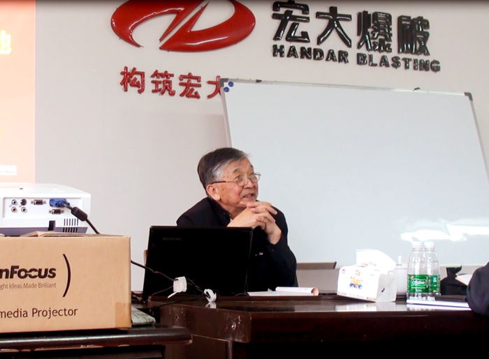 再次见到刘殿中教授感觉他依旧精神矍铄,连续两个半天8个课时的课对于一位年轻老师都是个很吃力的任务,但刘教授觉得这是一位师者传道、授业、解惑的好平台,更是一位平易敬人的老者授人以渔的好机会。周二(3月24日)刘教授的课程全部结束后他特意来到办公室,微笑着对我们说:这段时间我先留在项目部,帮你们兜底,万一那个老师临时来不了,只要是爆破方面的我都可以补上,因为这是宏大第一期黄埔军校培训班,一定要打响做出效果,让每一位学员满载而归。我的知识我会毫无保留的告诉大家,我不想把它带到棺材里,更想与大家分享交流,真心希望在本期黄埔军校培训班里以后能出一位像诺贝尔一样的人,为宏大,为国家做出贡献。