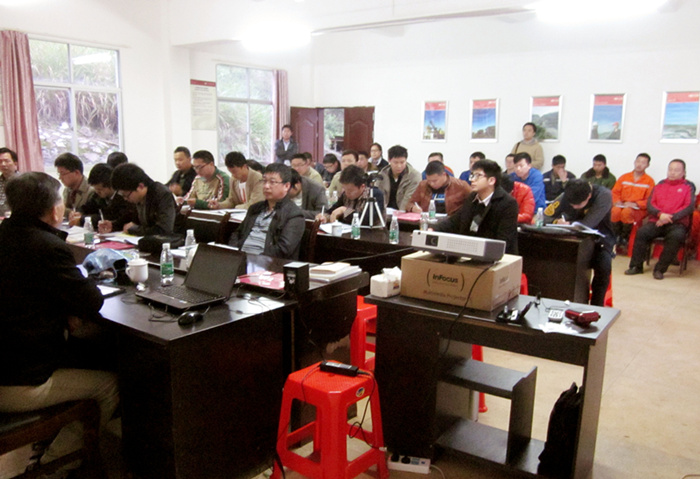 周三晚上,我们特意为刘教授安排了一次经验分享课,很显然刘教授将自己几十年的工作生活经验浓缩在短短的120分钟内,字字珠玑。课堂上,座无虚席,除了大宝山第一期爆破能手培训班的23名学员外,大宝山项目部钻爆大队、调度室、安环部、技术合同部全体员工都慕名而来。课后刘教授在白板上认真的写下了自己的手机号码并且很诚恳地对大家说:“我老了,记不清大家了,很抱歉,但你们可以随时打电话与我交流各种爆破施工问题,就说是宏大爆破第一期“黄埔军校”的学员我就能记得。”大家听了刘教授的话后既感激、感动,又觉得岁月很无情。