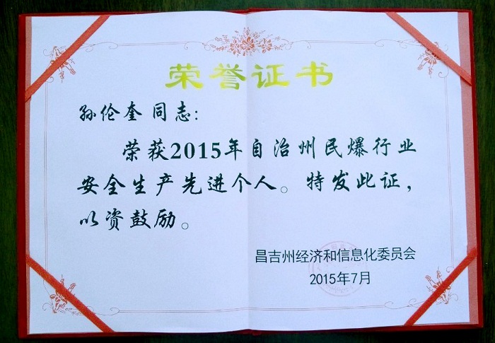 7月7日,广东宏大爆破股份有限公司下属宏大矿业有限公司新疆吉木萨尔地面站受邀参加由新疆昌吉州经济与信息化委员会组织召开的2015年度自治州电力设施保护暨民爆行业安全生产会议,会议表彰了自治州民爆行业安全生产先进单位和先进个人。我公司新疆吉木萨尔地面站荣获“2015年自治州民爆行业安全生产先进单位”,是全州唯一获此殊荣的民爆生产单位,地面站站长孙伦奎同志荣获“2015年度自治州民爆行业安全生产先进个人”,全州获此殊荣仅4人。