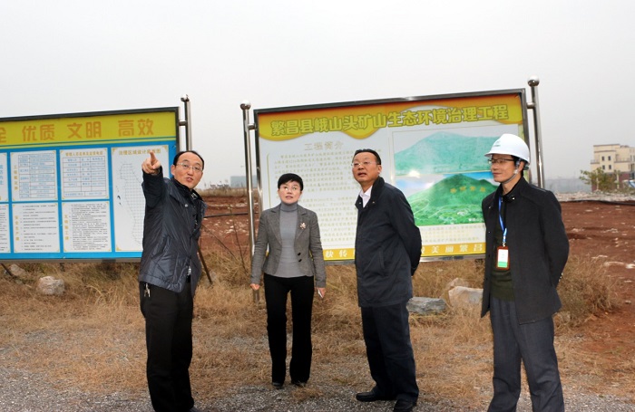 11月9日,已经进入深秋的繁昌县峨山头仍然绿意盎然。当日下午,安徽省国土资源厅副厅长潘海滨在繁昌县常务副县长殷琼、繁昌县国土局局长王军、副局长姚放等领导的陪同下,率省文明办、省经信委非煤办及省国土厅多部门负责人,来到广东宏大爆破股份有限公司控股子公司:宏大国源(芜湖)资源环境治理有限公司矿山资源环境治理项目点,繁昌县峨山头考察。考察期间,潘厅长在听取工作人员汇报后连连点头,对宏大国源公司治理业绩表示肯定。