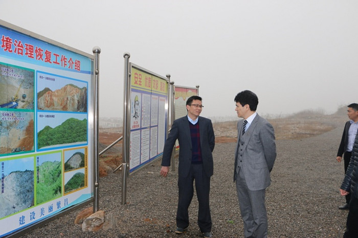 在会后,在宏大国源总经理张光权的陪同下,黄副总一行对宏大国源峨山头和西山联合两个废弃(关闭)矿山资源环境治理项目进行了视察,并在视察中详细了解了项目的建设情况、治理效果和产生的效益。