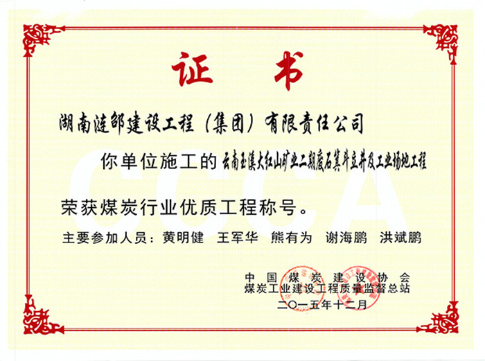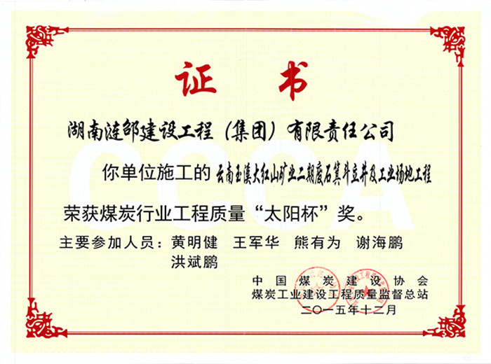 4月8日, 全国“煤炭施工企业转型发展交流座谈会暨煤炭建设行业创先争优表彰会”在重庆市隆重召开。广东宏大爆破股份有限公司控股子公司:湖南涟邵建设工程(集团)有限责任公司(以下简称:涟卲建工)承建施工的“云南玉溪大红山矿业二期废石箕斗立井及工业场地工程”荣获煤炭行业最高质量奖项--“太阳杯”奖,这也是公司近5年来第三次获得全煤行业建设质量最高奖项。