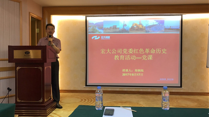 17日下午,郑炳旭董事长结合公司的发展战略,介绍了宏大的过去、阐述了宏大的现在、展望了宏大的未来,给大家上了一堂斗志昂扬、振奋人心的党课。