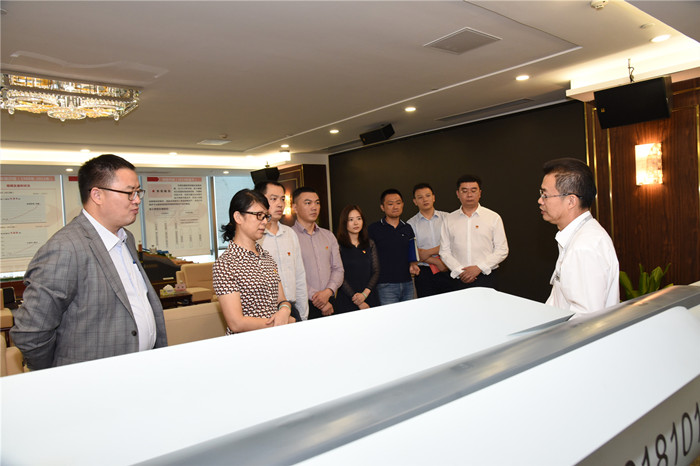在宏大公司展厅,宏大公司党委书记、董事长郑炳旭首先对省政府办公厅多年来对宏大公司的大力支持表示感谢,公司的发展壮大与政府的大力扶持密不可分。同时围绕广业集团整体发展战略就宏大公司三十年发展历程以及在绿色环保、智能装备制造、国防建设贡献方面所取得成绩向与会党员做了详细介绍。