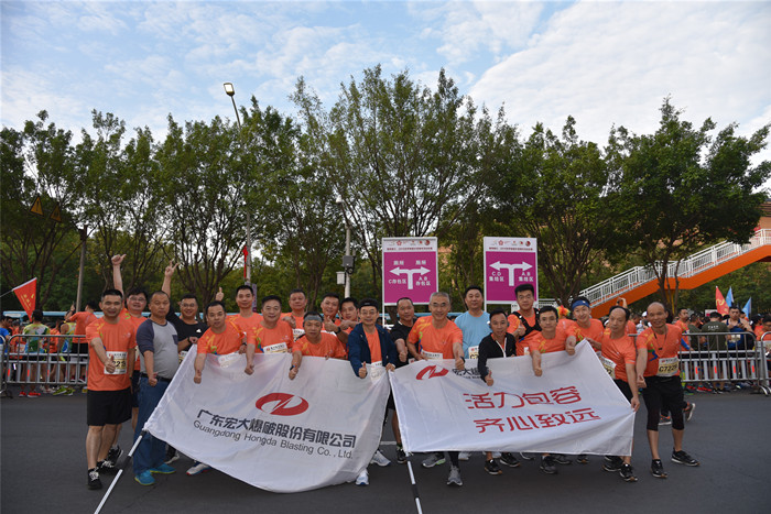 11月3日,2019年世界客都长寿马拉松赛在梅州市梅县区人民广场正式开跑,宏大公司总部及民爆集团派出近五十人跑步团队参加此次比赛。宏大公司的跑者们举旗挥舞、绕城奔跑、绽放风采。周边热情的观众燃爆全场,为梅州马拉松比赛全程带来了非同一般的体验。